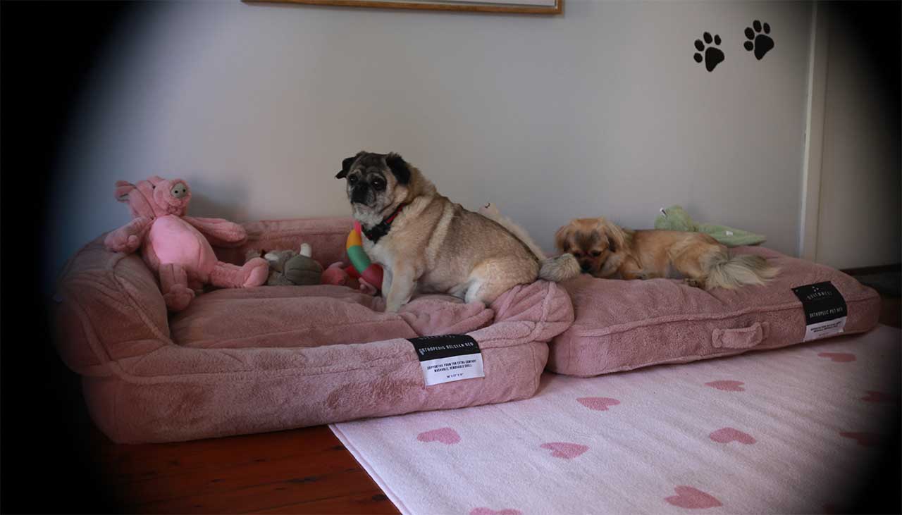 Beau (pug) and Bam Bam (Tibbie) will make your pooch feel like part of the family.